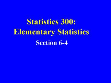 Statistics 300: Elementary Statistics PowerPoint PPT Presentation