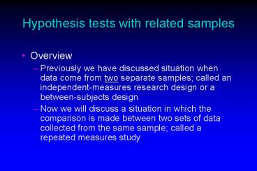 related (or repeated) measures - e.g. Purpose to determine effectiveness of a