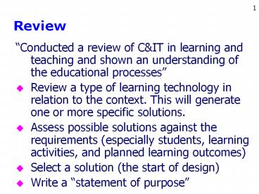 activities, and planned learning outcomes) - Select a solution (the start of design)