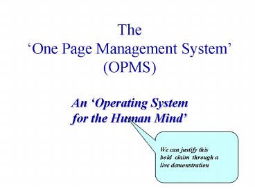 2OPMS is The practical, effective means to