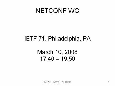 • http//www3.tools.ietf.org/wg/netconf/trac/wiki
