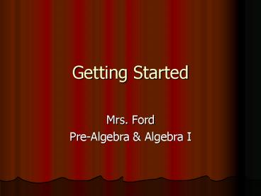 ... Started. Mrs. Ford. Pre-Algebra & Algebra I. What you need: ... Get Calculator. Sharpen Pencil. Get Started on Bell Work. Exit Procedures: Pack your materials ... – PowerPoint PPT presentation