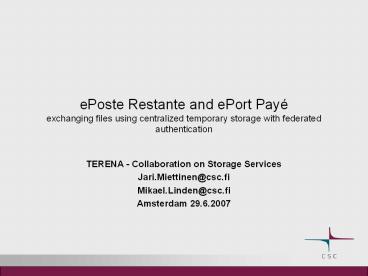 ePoste Restante and ePort Pay PowerPoint PPT Presentation