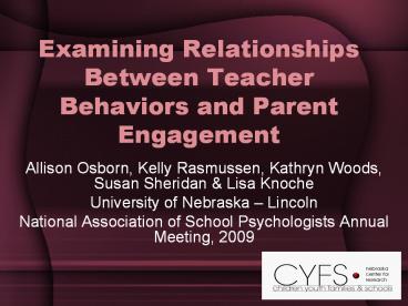 Title: Examining Relationships Between Teacher Behaviors and Parent Engagement