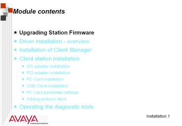 - For details consult the Avaya Wireless PC Card