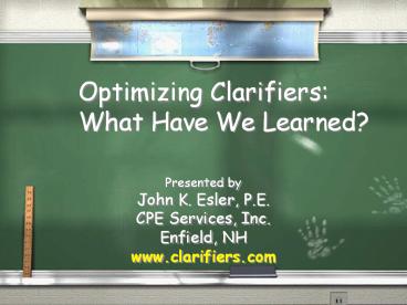 Title: Optimizing%20Clarifiers:%20What%20Have%20We%20Learned?