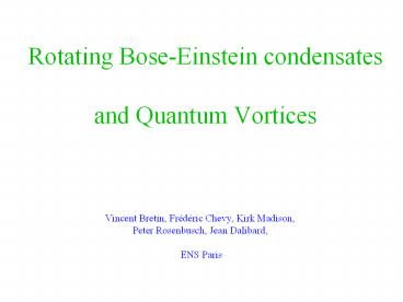 Title: Rotating Bose-Einstein condensates and Quantum Vortices