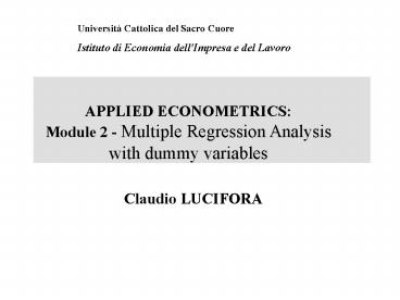 APPLIED ECONOMETRICS Module 2 - Multiple