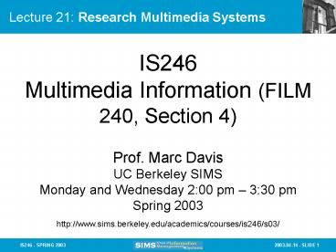<Notice: Removed> Lecture 21: Research Multimedia Systems PowerPoint PPT Presentation