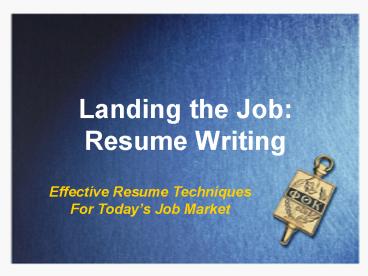 Landing the Job: Resume Writing PowerPoint PPT Presentation