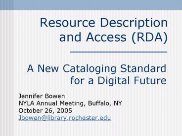 <Notice: Removed> Resource Description and Access (RDA) PowerPoint PPT Presentation