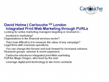 Integrated Print Web Marketing through PURLs PowerPoint PPT Presentation