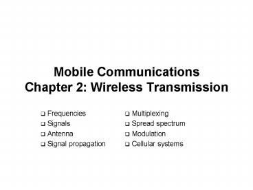 <Notice: Removed> Mobile Communications Chapter 2: Wireless Transmission PowerPoint PPT Presentation
