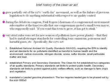 Title: brief history of the clean air act