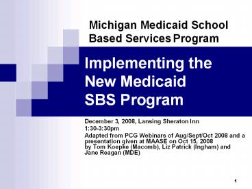 <Notice: Removed> Implementing the New Medicaid SBS Program PowerPoint PPT Presentation