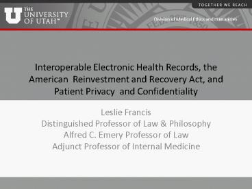 Title: Interoperable Electronic Health Records, the American Reinvestment and Recovery Act, and Patient Privacy and Confidentiality