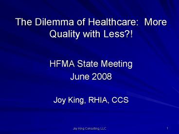 - Joy King, RHIA, CCS