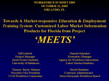 1WORKFORCE SUMMIT 2005 OCTOBER 11, 2005 ORLANDO,