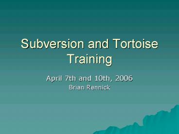 Subversion and Tortoise Training PowerPoint PPT Presentation