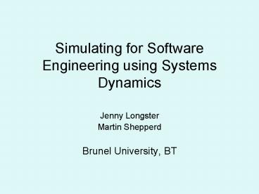 <Notice: Removed> Simulating for Software Engineering using Systems Dynamics PowerPoint PPT Presentation