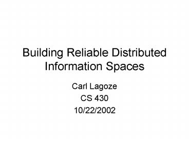 Title: Building Reliable Distributed Information Spaces