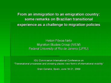 to and to assist Brazilian emigrants activism. - National Council of Immigration of Brazil (CNI),