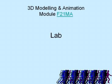... in this unit and use Flex Builder to compile in .swf files for Adobe's Flash player. End. 3D Modelling & Animation. Module F21MA ... – PowerPoint PPT presentation