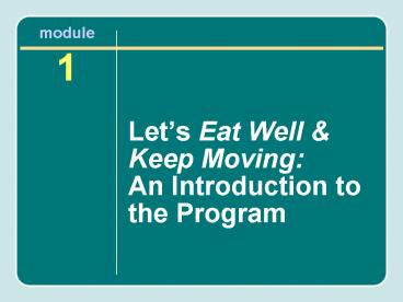 Healthy Living - Module 4 The Tour de Health and Nutrition Facts