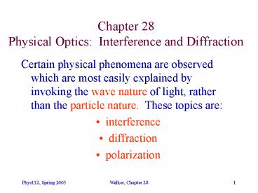 Title: Chapter 28 Physical Optics: Interference and Diffraction
