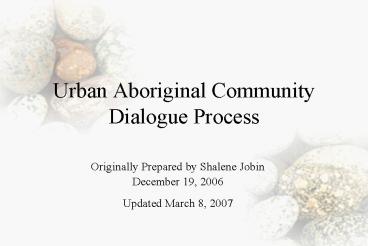 2007 to move forward on this initiative - The Canadian Native Friendship Centre offered to
