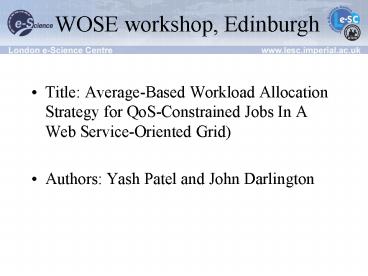 <Notice: Removed> WOSE workshop, Edinburgh PowerPoint PPT Presentation