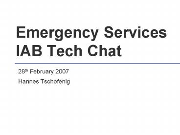 <Notice: Removed> Emergency Services IAB Tech Chat PowerPoint PPT Presentation