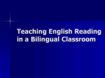 <Notice: Removed> Teaching English Reading in a Bilingual Classroom PowerPoint PPT Presentation