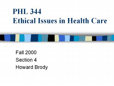 PHL 344 Ethical Issues in Health Care PowerPoint PPT Presentation