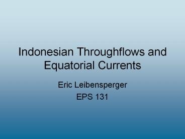 Indonesian Throughflows and Equatorial Currents PowerPoint PPT Presentation