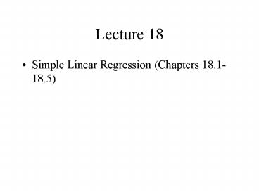 <Notice: Removed> Simple Linear Regression (Chapters 18.1-18.5) PowerPoint PPT Presentation