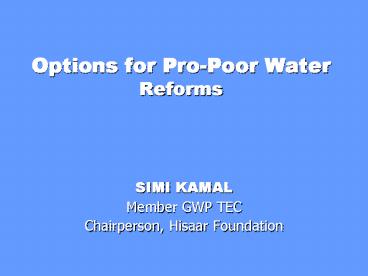 Title: Options for ProPoor Water Reforms