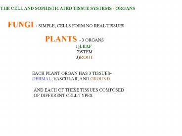 THE CELL AND SOPHISTICATED TISSUE SYSTEMS ORGANS PowerPoint PPT Presentation