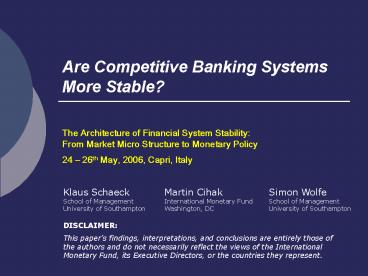 1Are Competitive Banking Systems More Stable?
