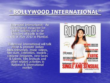 • Bollywood International A Quarterly which will
