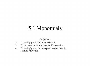 5'1 Monomials PowerPoint PPT Presentation