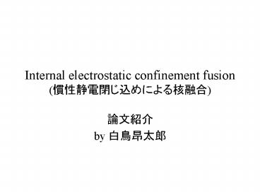<Notice: Removed> Internal electrostatic confinement fusion (??????????????) PowerPoint PPT Presentation