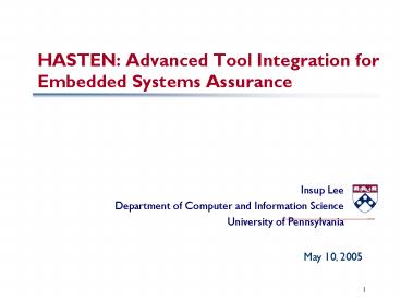 <Notice: Removed> HASTEN: Advanced Tool Integration for Embedded Systems Assurance PowerPoint PPT Presentation