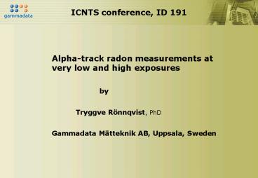 quality control and background calculation. - Alpha-track radon measurements at high exposures