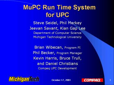 <Notice: Removed> MuPC Run Time System for UPC PowerPoint PPT Presentation