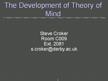 1The Development of Theory of Mind