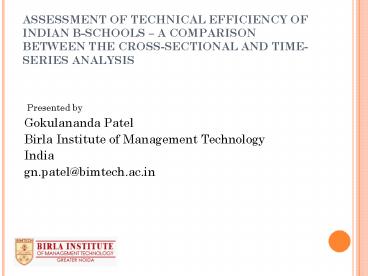 <Notice: Removed> ASSESSMENT OF TECHNICAL EFFICIENCY OF INDIAN B-SCHOOLS PowerPoint PPT Presentation