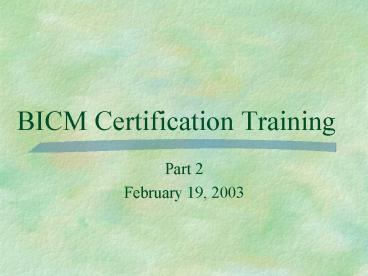 Title: BICM Certification Training