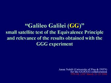 Anna Nobili (University of Pisa INFN) for the