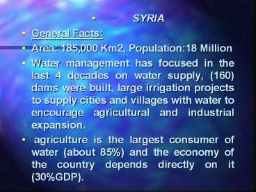 • Syria depends on surface and ground water for